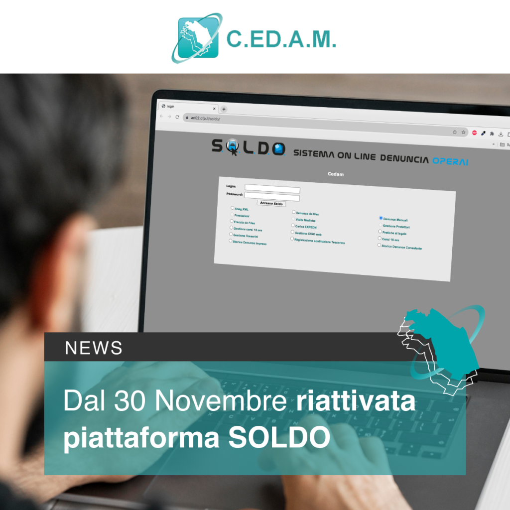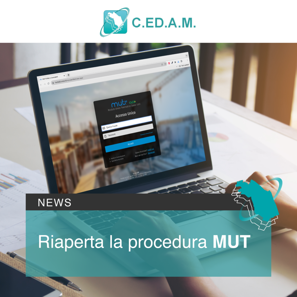 C.ED.A.M con la denuncia telematica del mese di Ottobre, compilabile dal mese di Novembre, utilizzerà il nuovo sistema MUT (Modello Unico Telematico) abbinato all’Osservatorio Cantieri.